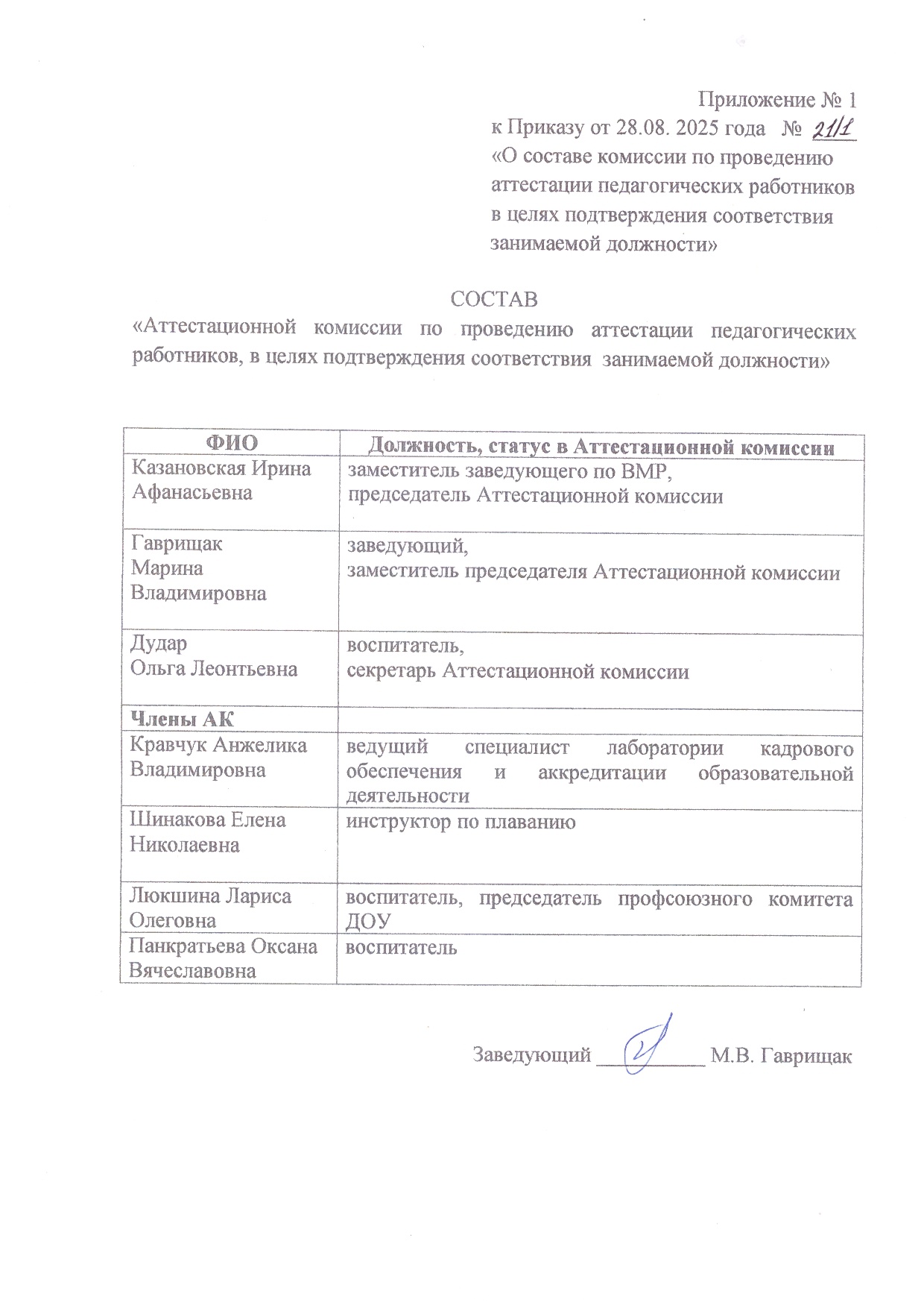 Приказ на соответствие занимаемой должности Приложение 1 |